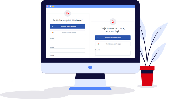 Para se cadastrar, você pode usar sua conta do Gmail ou do Facebook, ou criar uma conta com seu e-mail.
