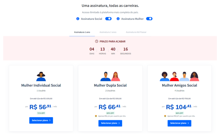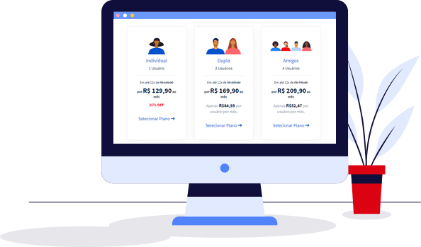 Você pode escolher entre planos individuais ou compartilhados com até 3 amigos. Também pode escolher o tempo de vigência do seu plano: 1 ou 2 anos.